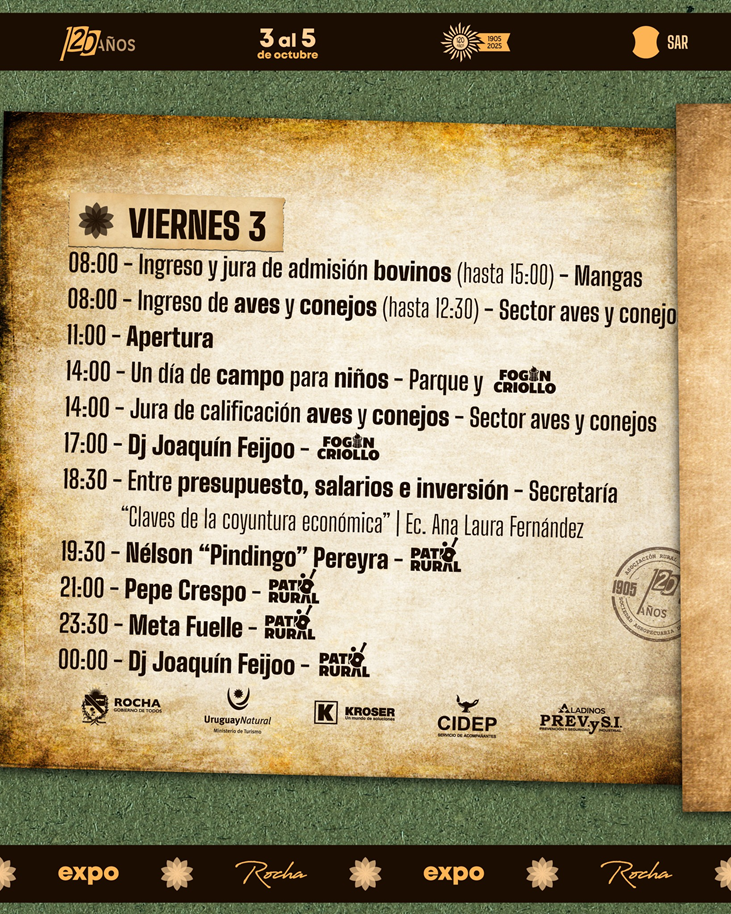La mesa está servida, este viernes comienza la 74a. edición de la Expo Rocha en el 120 aniversario de la Sociedad Agropecuaria de Rocha. Tres días con múltiples actividades en el gran festejo del campo en la ciudad.