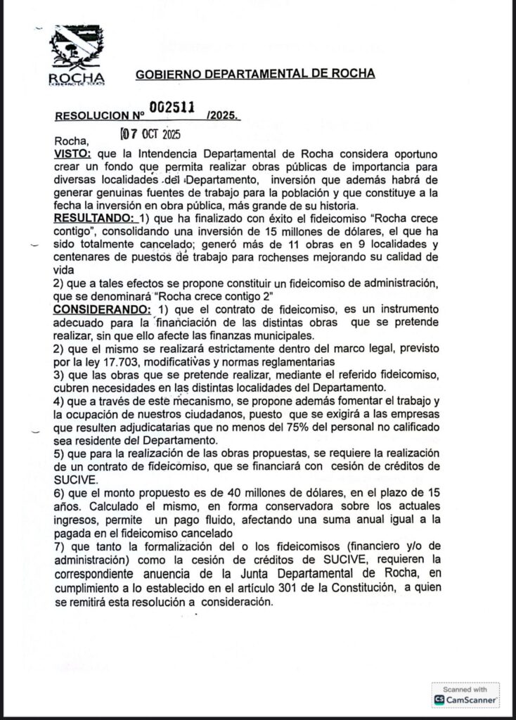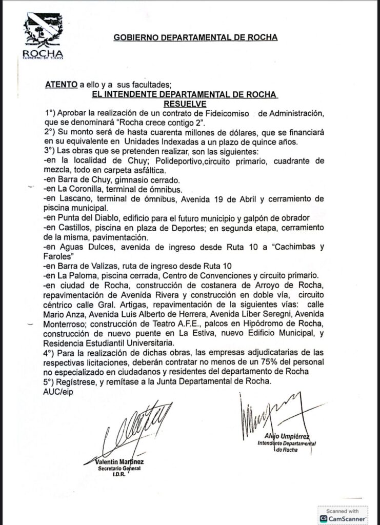 Fideicomiso “Rocha crece contigo 2” prevé obras de magnitud para todo el departamento