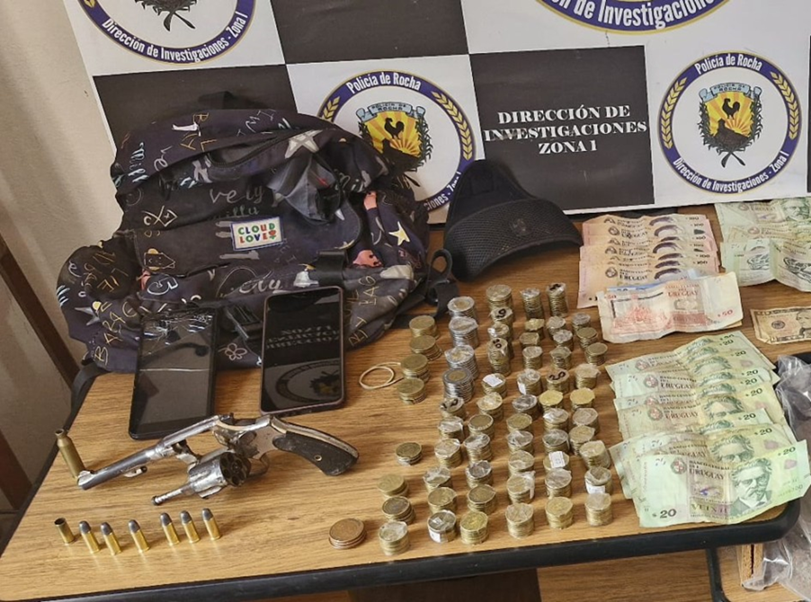 Luego de unos minutos se obtuvo anuencia para el ingreso a la vivienda, donde fueron detenidos dos hombres y una mujer, y se incautó un revólver calibre 32, varios envoltorios con monedas empaquetadas totalizando 2.547 pesos, una vaina detonada, sustancia vegetal, sustancia blanca, así como otros elementos de relevancia para la investigación. En la billetera de uno de los detenidos fueron ubicados 1470 pesos y 10 dólares. En la cocina de la vivienda se encontraba la moto marca Baccio Px que habría sido utilizada en el ilícito, todo lo que fue documentado por personal de Policía Científica.