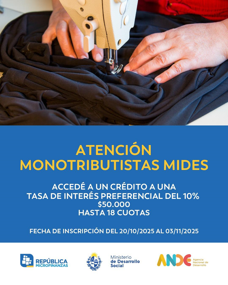 El Ministerio de Desarrollo Social (Mides), junto a República Microfinanzas y la Agencia Nacional de Desarrollo (ANDE), realizó el lanzamiento oficial de una nueva convocatoria de créditos subsidiados dirigida a monotributistas sociales. El evento contó con la participación de las máximas autoridades de las tres instituciones, así como de emprendedores que compartieron sus experiencias exitosas.
