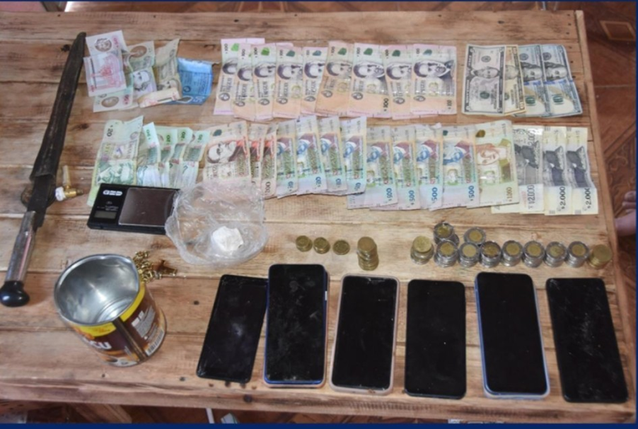 Tras la realización de distintas diligencias en coordinación con la Fiscalía del caso, se efectuó un allanamiento en dicho lugar, donde se ubicó un envoltorio grande conteniendo sustancias con apariencia a clorhidrato de cocaína, varios teléfonos, 14.300 pesos y 215 dólares, además de una balanza de precisión, entre otros efectos.