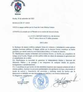 El Legislativo Departamental hizo público un comunicado en el que rechaza atentado contra Ferrero y se solidariza con la Fiscal...