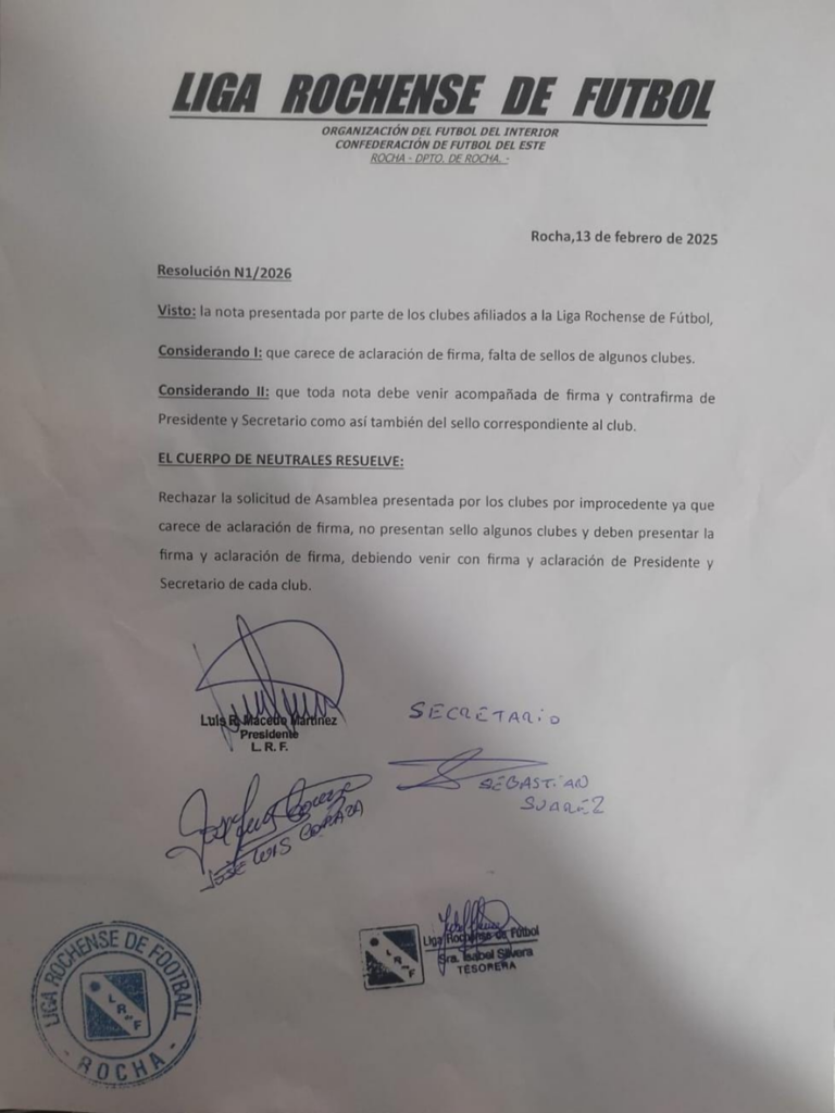 Neutrales de la Liga Rochense de Fútbol rechazaron solicitud de Asamblea