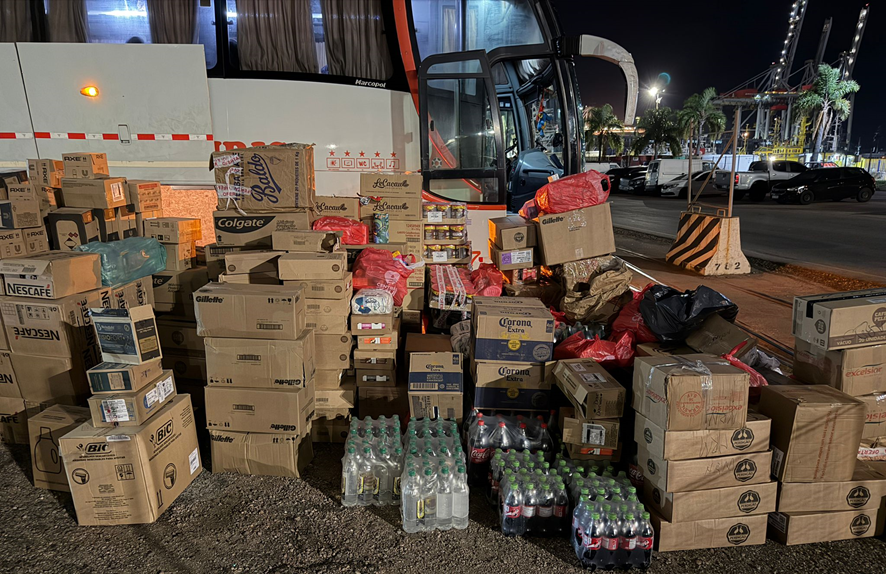 Un operativo realizado por equipos del Grupo de Respuesta e Inteligencia Aduanera (GRIA) y la Aduana Móvil Regional Sur culminó con la incautación de una gran cantidad de productos en infracción aduanera que eran trasladados en un ómnibus de excursión.