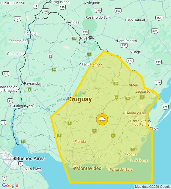 La advertencia de nivel amarillo abarca varios departamentos del territorio uruguayo, entre los que se encuentra Rocha.