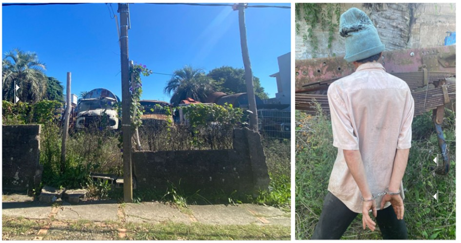 Efectuada una inspección en el predio, fue ubicada una persona intentando ocultarse entre los vehículos aparentemente con intenciones de hurto, por lo que se procedió a su detención.